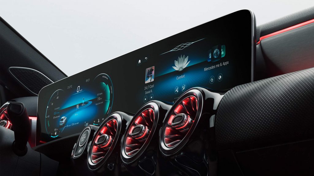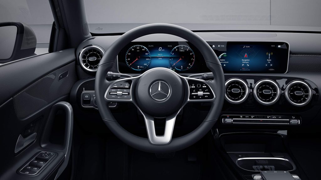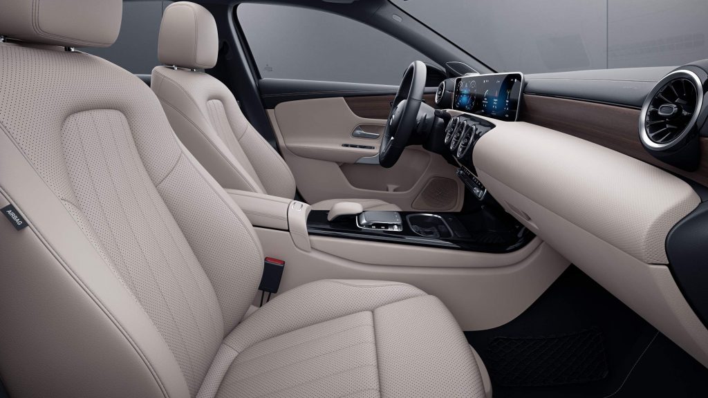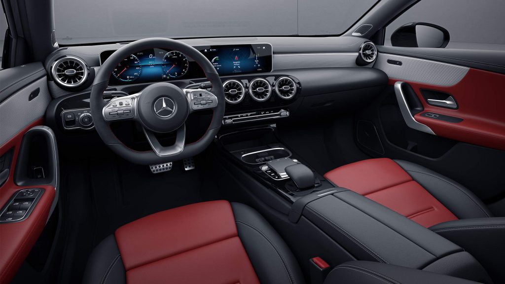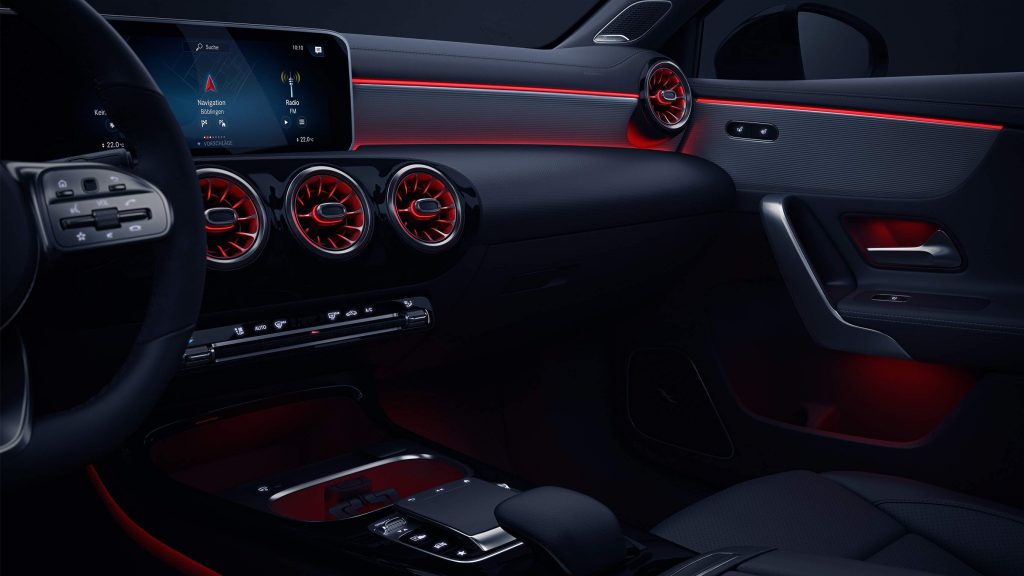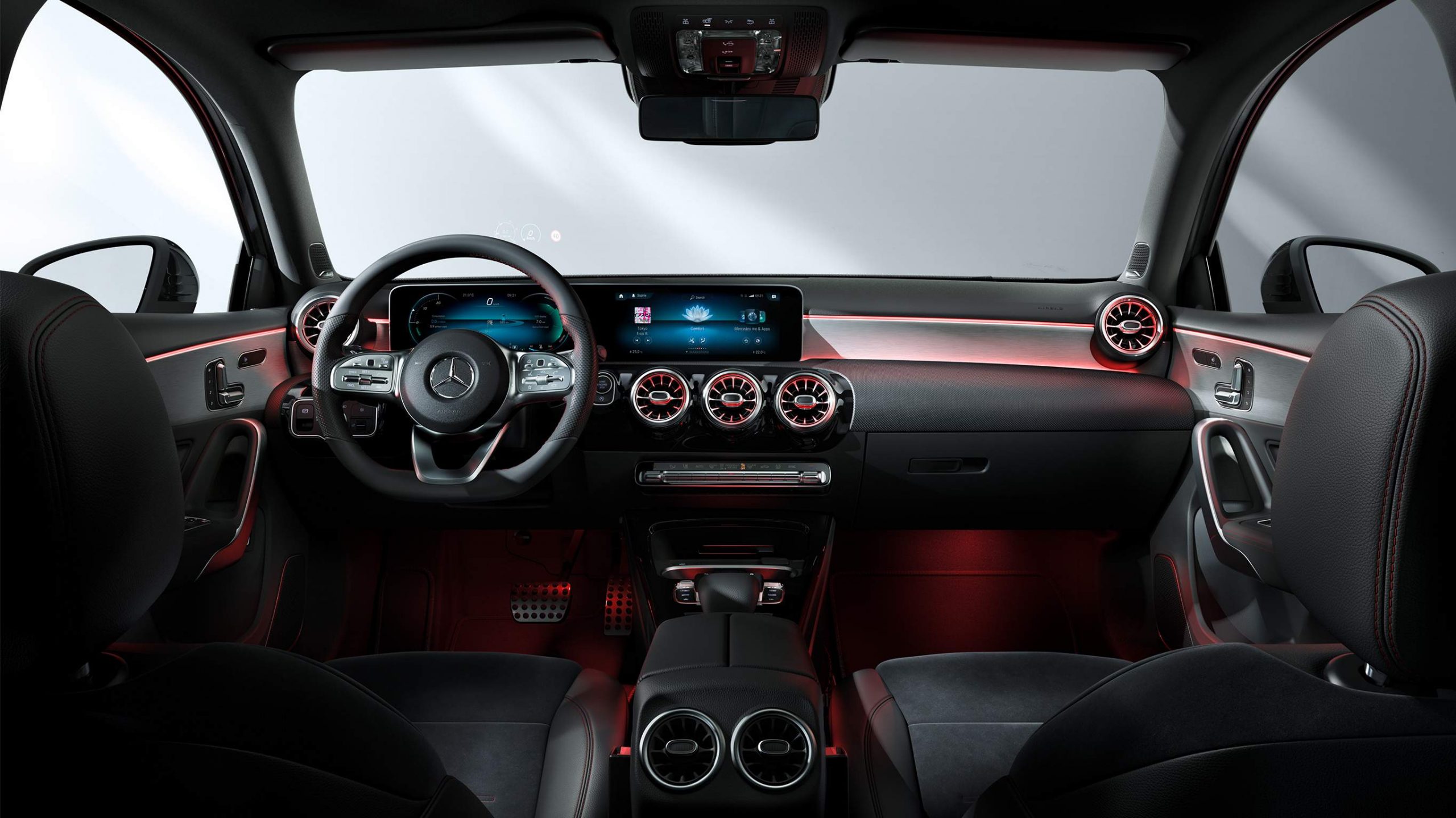 Ο εσωτερικός χώρος της νέας A-Class Sedan αγκαλιάζει κυριολεκτικά τους επιβάτες. Οι μεταβάσεις ανάμεσα στο ταμπλό οργάνων, την κεντρική κονσόλα και τις επενδύσεις των θυρών είναι ρευστές και διαμορφώνουν την ευχάριστη σχεδίαση “wrap around”. Είναι τόσο ιδιαίτερη στην κατηγορία της όσο και η ποικιλία στοιχείων διάκοσμου και ο ατμοσφαιρικός φωτισμός, που φωτίζει ιδανικά το εσωτερικό..