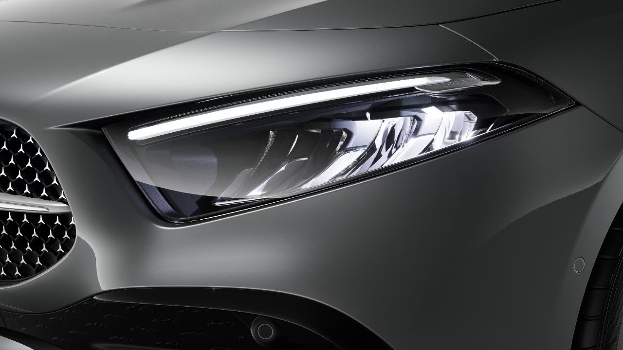 Η ανανεωμένη εξωτερική σχεδίαση της νέας A-Class εντυπωσιάζει με το προοδευτικό μπροστινό τμήμα με το μοτίβο αστεριών Mercedes-Benz στη μάσκα, τους επίπεδους προβολείς LED και διαχύτη με στοιχεία χρωμίου.