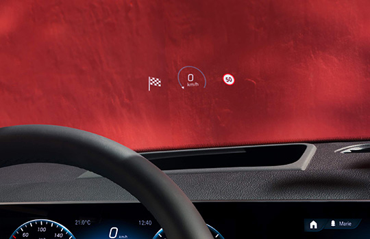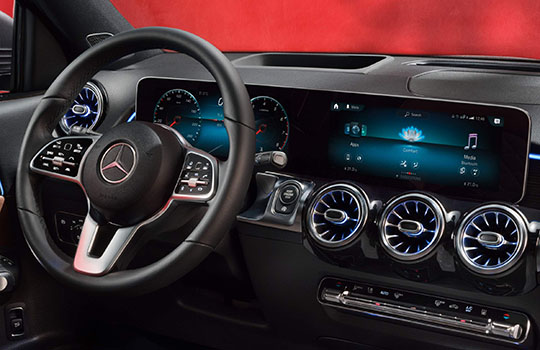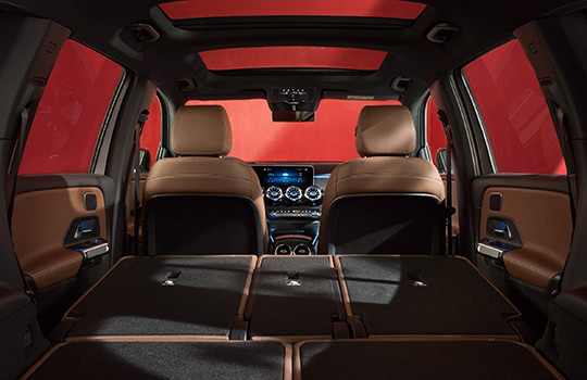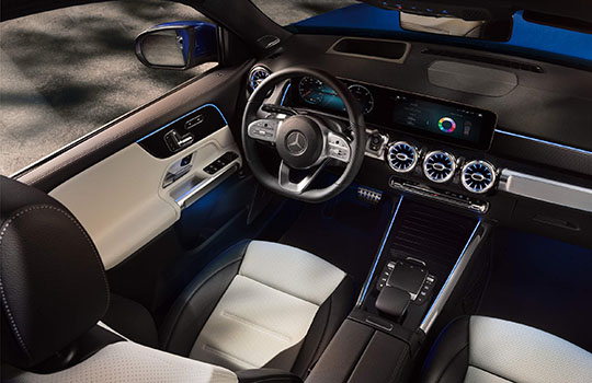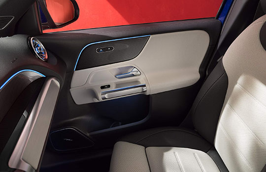 Ο εσωτερικός χώρος της νέας GLB είναι εντυπωσιακά μεγάλος και εκπληκτικά κομψός. Το βλέμμα μαγνητίζεται από το κόκπιτ με ευρεία οθόνη και τον ευχάριστο ατμοσφαιρικό φωτισμό, αλλά και τα επιβλητικά σχεδιαστικά στοιχεία SUV.