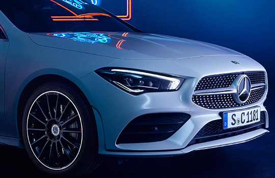 Κοιτάζοντάς την από μπροστά, μαγνητίζει το βλέμμα: Η νέα CLA ακτινοβολεί πολυτέλεια και δύναμη πάνω στους τροχούς της. Όμως το φαρδύ μετατρόχιο δεν προσθέτει πόντους μόνο στην εμφάνιση, αφού, χάρη σε αυτό, το όχημα πατάει πιο γερά στο δρόμο, βελτιώνεται αισθητά η δυναμική οδήγηση στις στροφές και σταθεροποιείται η κίνηση στην ευθεία.
